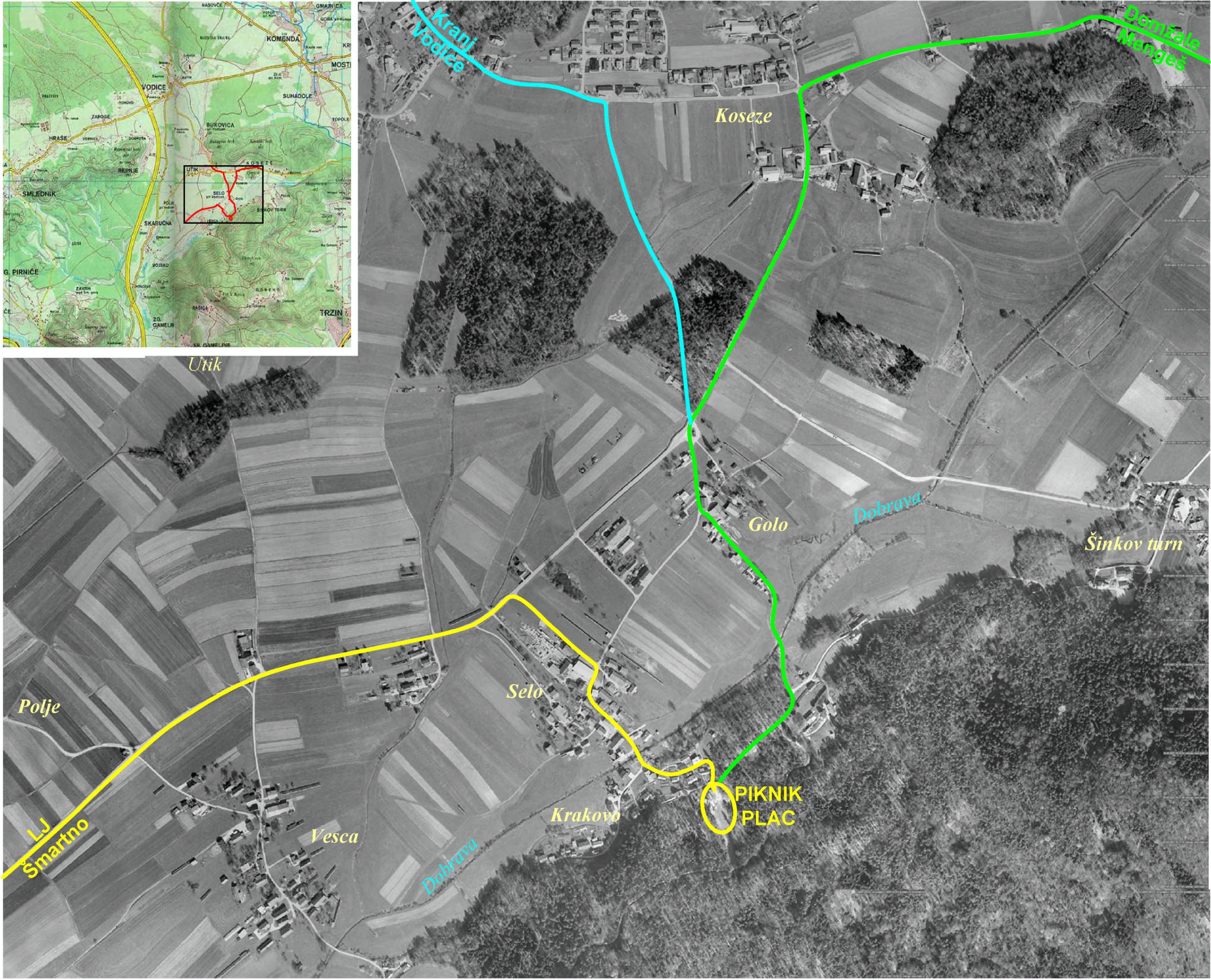 Rezervirali smo prostor v Selu pri vodicah 10a – prosim oglejte si zemljevid ali sliko poti do piknik prostora.
