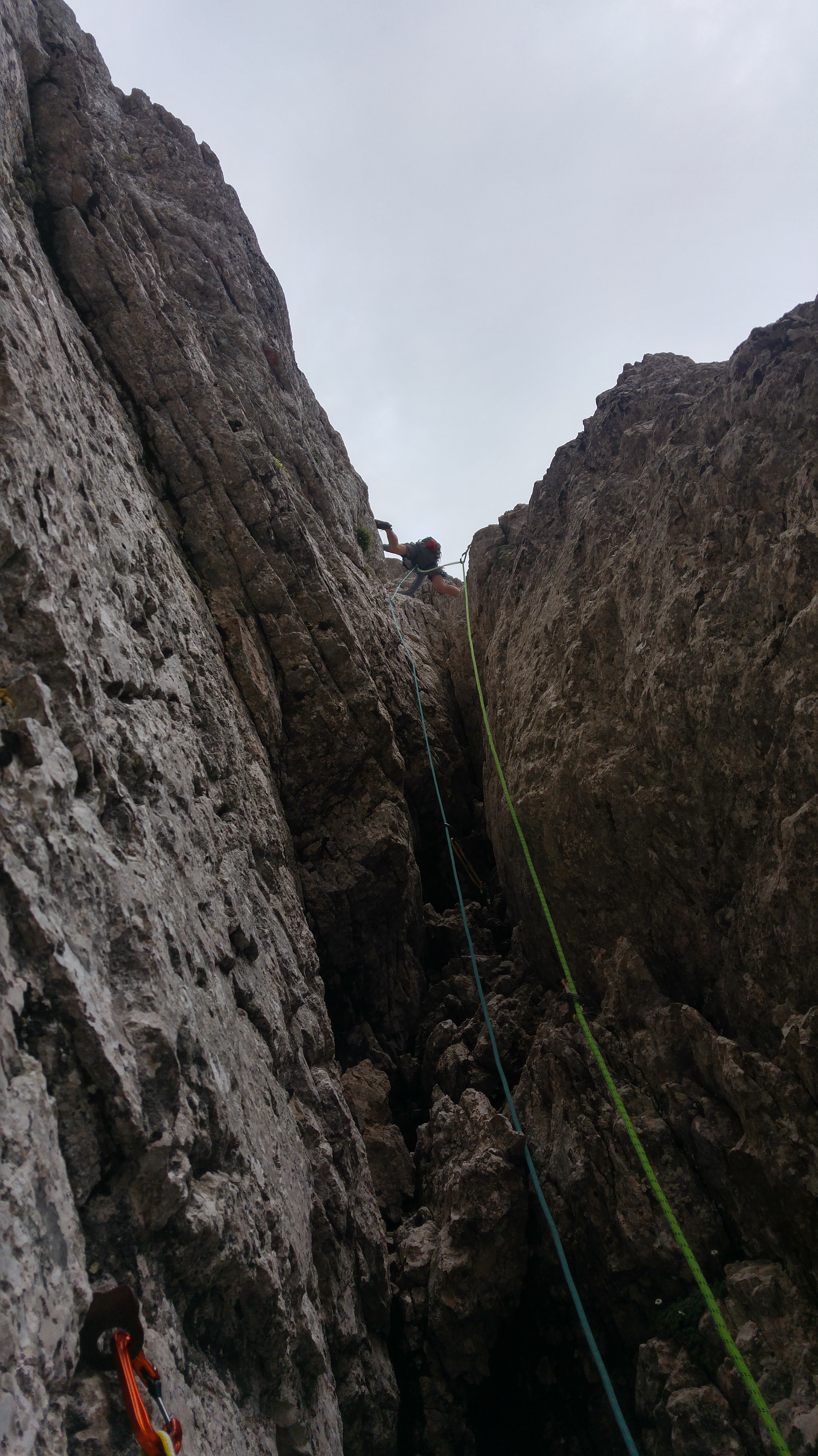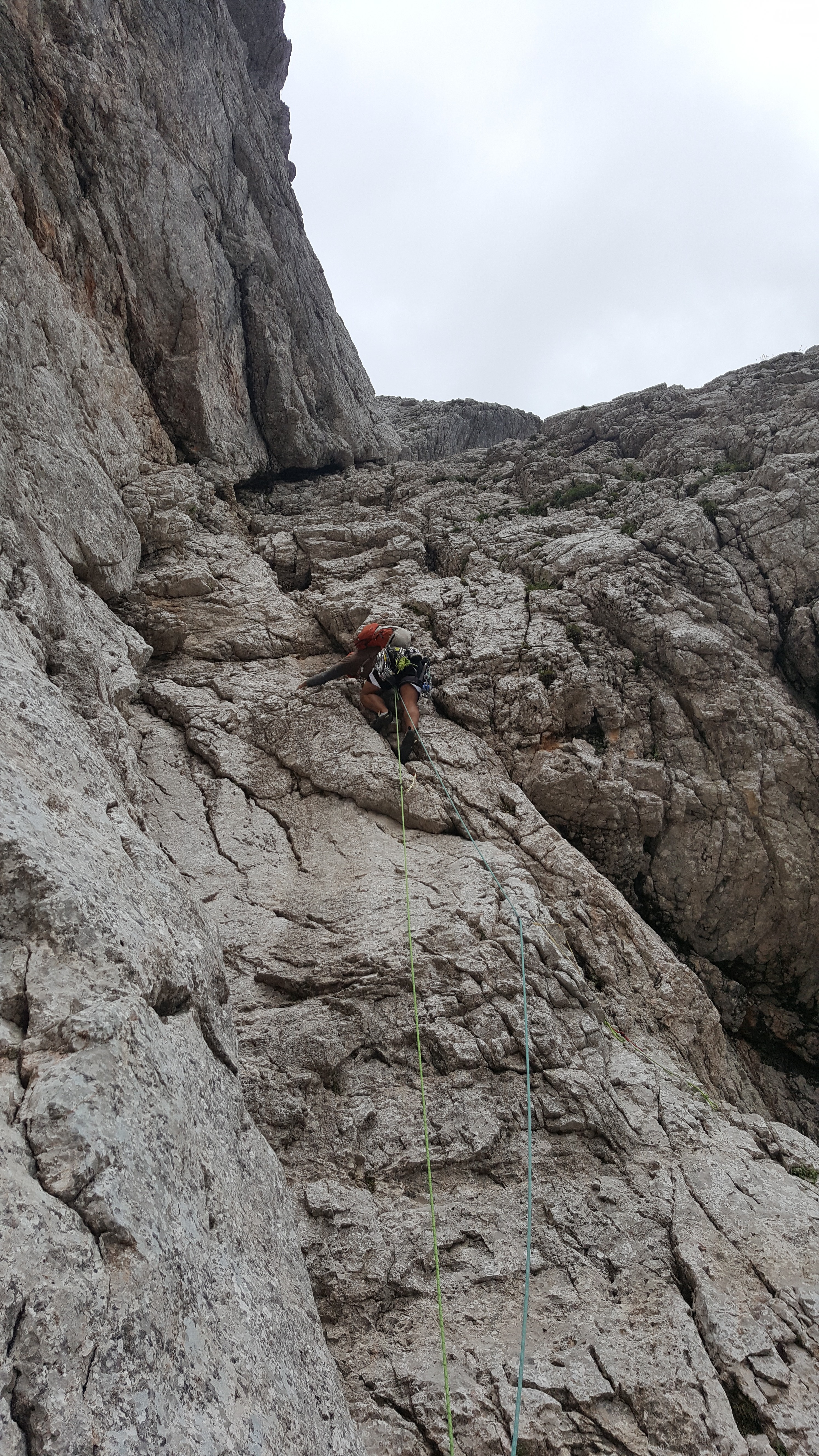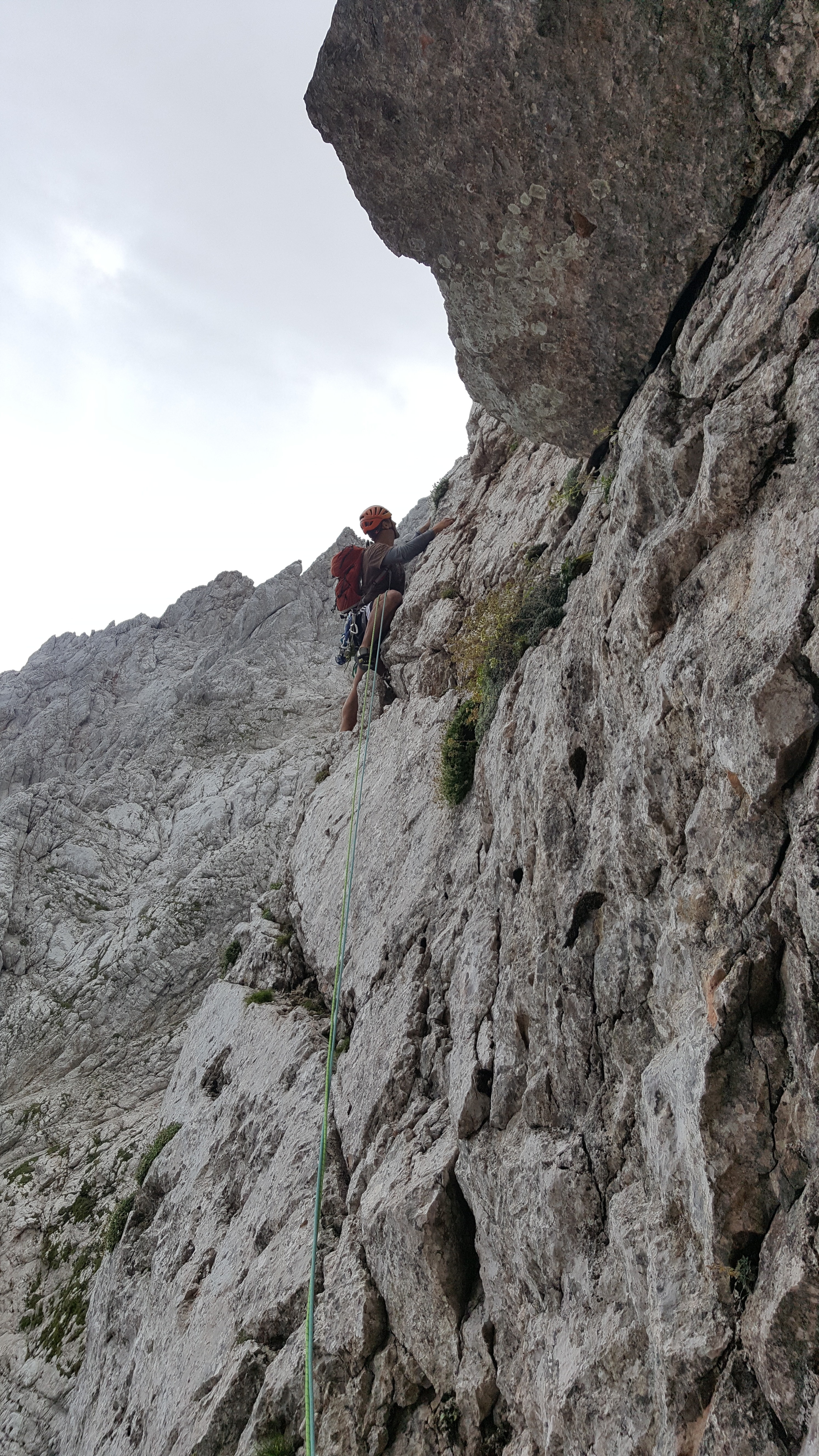 Ker so nam sončni dnevi zadnje časi strogo odmerjeni, sva v sredo z Menotom zagrabila ponujeno, vzela dopust in se zapeljala na Jezersko. Splezala sva Čarovnika iz Oza, zanimivo smer v stebru Grintovca. Smer se ne ponaša z najboljšo skalo, vsekakor pa ponuja nekaj zelo lepih prehodov v strmi steni. Klinov je bolj za vzorec, kar skupaj s slabšo skalo pripomore k temu, da gre kar za resno smer, ki v tebi predrami ‘hribovca’. Čarovnik se v zadnjem raztežaju priključi najlepšemu VI- cugu Tomaževega stebra, ki je češnjica na tortici preplezani smeri. Dejte nam več sonca!