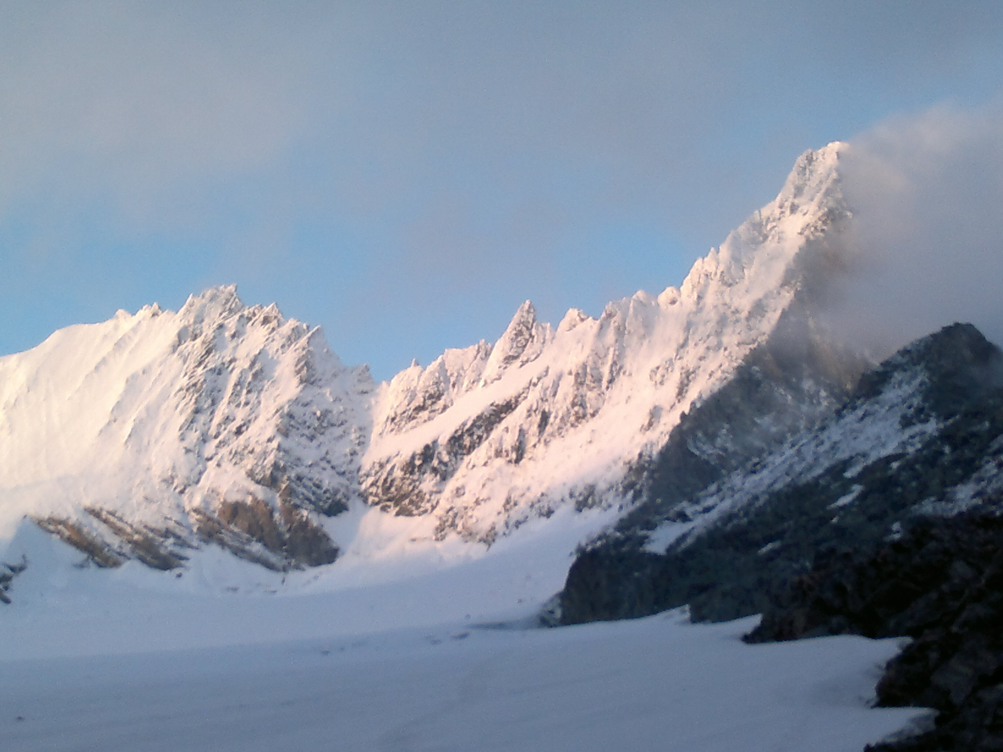 Medtem sta se Marjan in Jaka že od ranih jutranjih ur trudila splezati celotni SZ greben GG-ja. Stüdlgrat je bil sicer za odtenek težji kot v idelanih letnih in zimskih razmerah. Celotni GG je bil ovit v lepo tenko belo snežno obleko. Žal pa ta ni zmrznila v celoti, saj so jo dnevne temperature mehčale in tanjšale. Marjan in Jaka sta v danih razmerah doživela prvovrstno plezalno avanturo. Terena ni bilo mogoče ‘popikati’ pač sta ga večino časa pridno čistila in ‘mixala’. Časa jima je zmanjkalo za celotni greben in po skoraj trinajstih urah sta sestopila na ledenik. Zato pa jima ostaja nova naloga plezanja drugega dela grebena do vrha za naslednjič.
