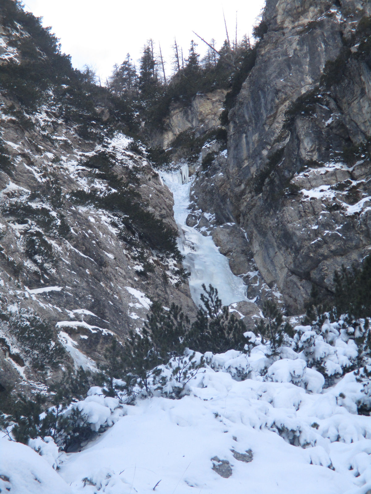 Danes sva z Tončkom šla v zimsko idilo in neverjeten mir pod Prisojnik. Najprej sva šla pogledat, kako zgleda zavesa v Centralnem slapu, pa sva ugotovila, da suh, votel in svečkast led brez neke možnosti varovanja ni za take šalabajzerje kot sva midva, zato sva se spustila nazaj dol in šla iskat srečo v druge slapove.