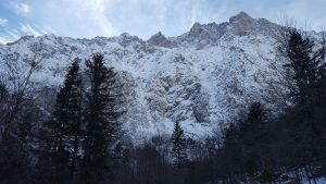 Praznični petek in obetavna vremenska napoved sta bila povod, da z Gresom speljeva malo daljšo turo. Najprej sva imela plane v Julijcih, vendar sva jih po sredini izvidnici opustila. Glede na količino padavin in temperature v preteklih dneh, se nama je zdelo, da bi lahko našla dobre razmere nad Logarsko dolino. Logična izbira je bila severna stena Planjave.