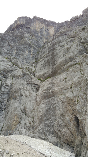 Seveda nisva bila edina, ki sva pred mrazom zbežala na J stran in ta dan je bilo Pod srcem kar lepo število navez, ki so plezale Kuštrasto, Lijak, Z Zajedo in verjetno še kaj.