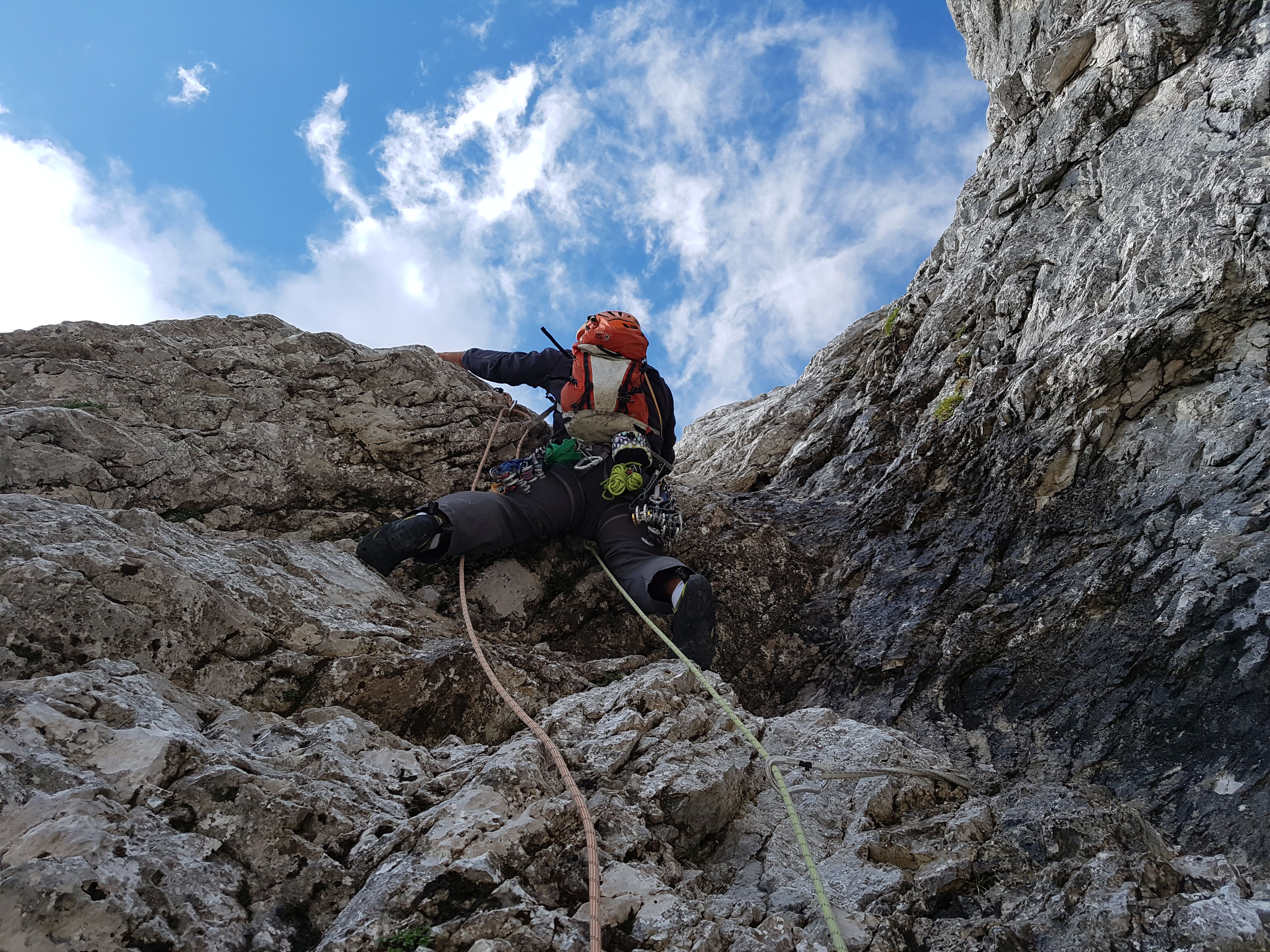 Sicer sem bolj začetnik ampak tale smer je trenutno pri meni na prvem mestu glede lepe plezarije. Videti je krušljivo ampak lepo drži. Skoraj nič ni letelo v dolino 🙂