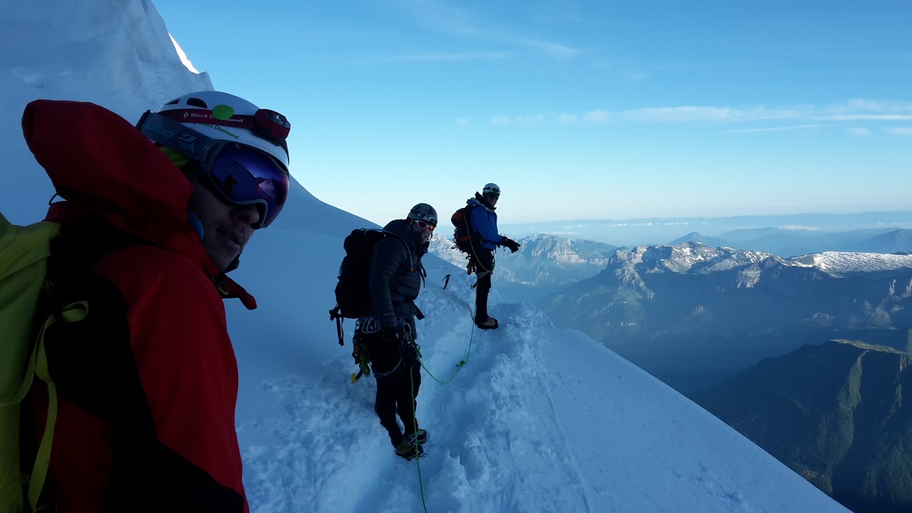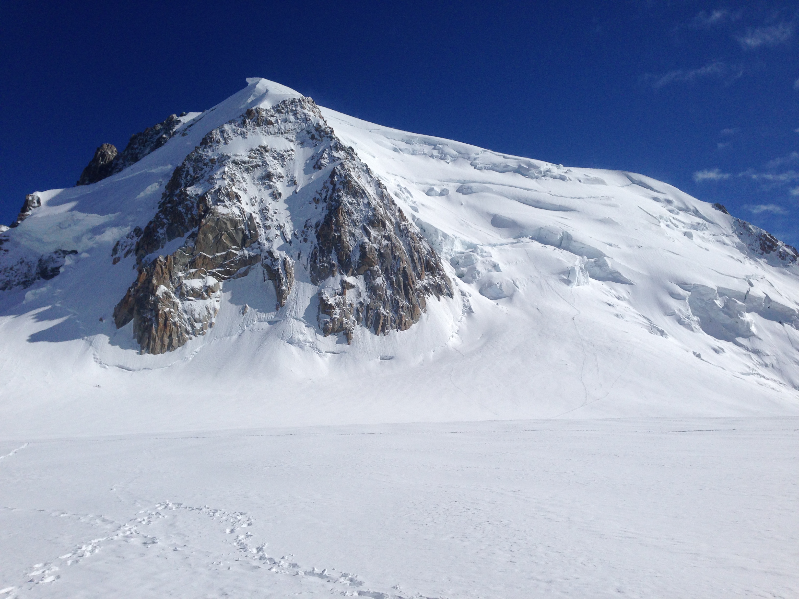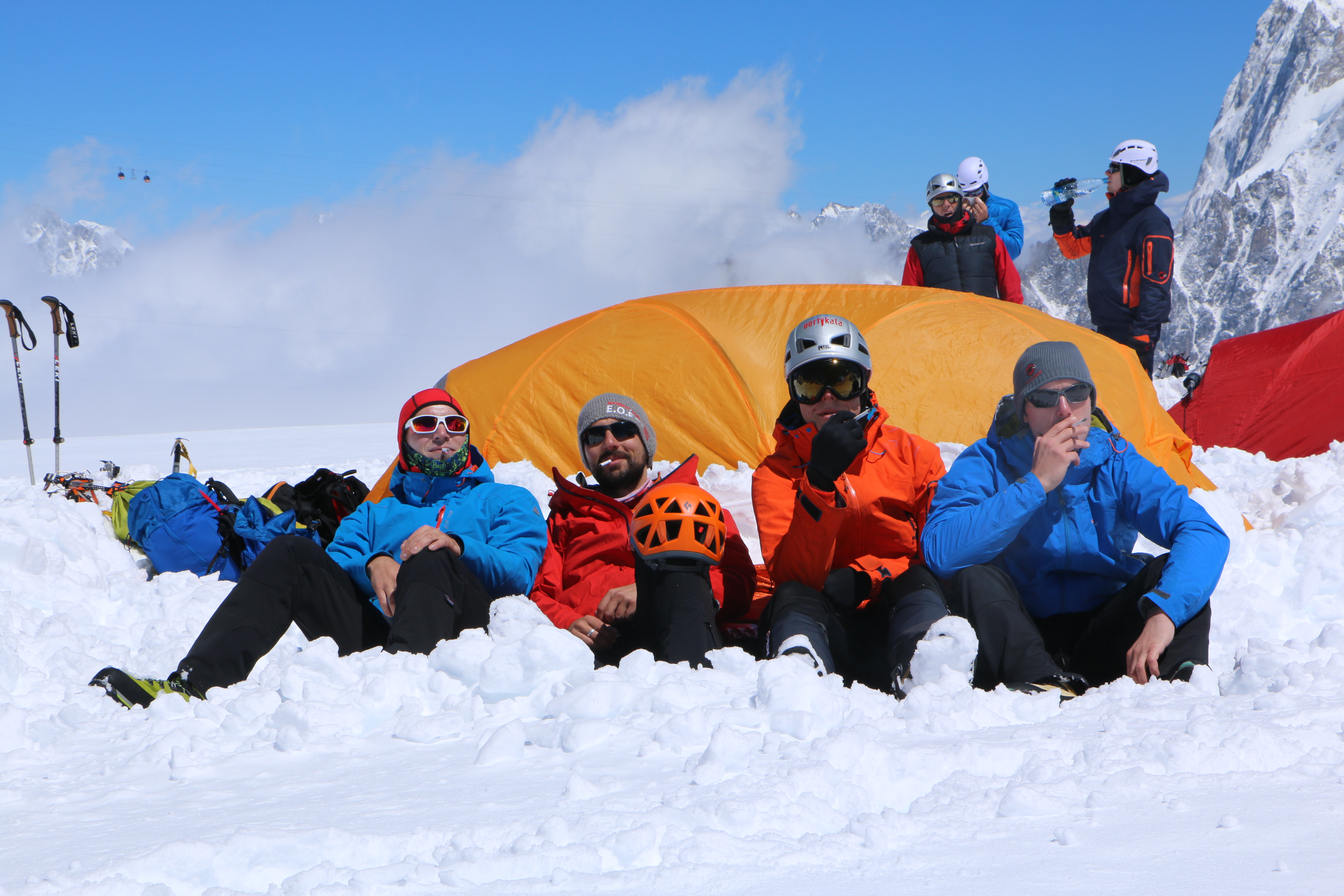 Po dobri uri hoje smo našli pravo mesto za postavitev baznega tabora. 1, 2, 3 smo postavili šotore in se podali na aklimatizacijo na ca. 100 m višji bližnji vrh z imenom Pointe Lachenal (3613 m.n.v), od kjer smo debelo uro z očmi požirali mogočne stene Mont Blanc du Tacula (4248 m.n.v) in Aiguilles du Diable (4114 m.n.v.), ki se strmo v nebo dvigujeo nad ledenikom Glacier du Géant.