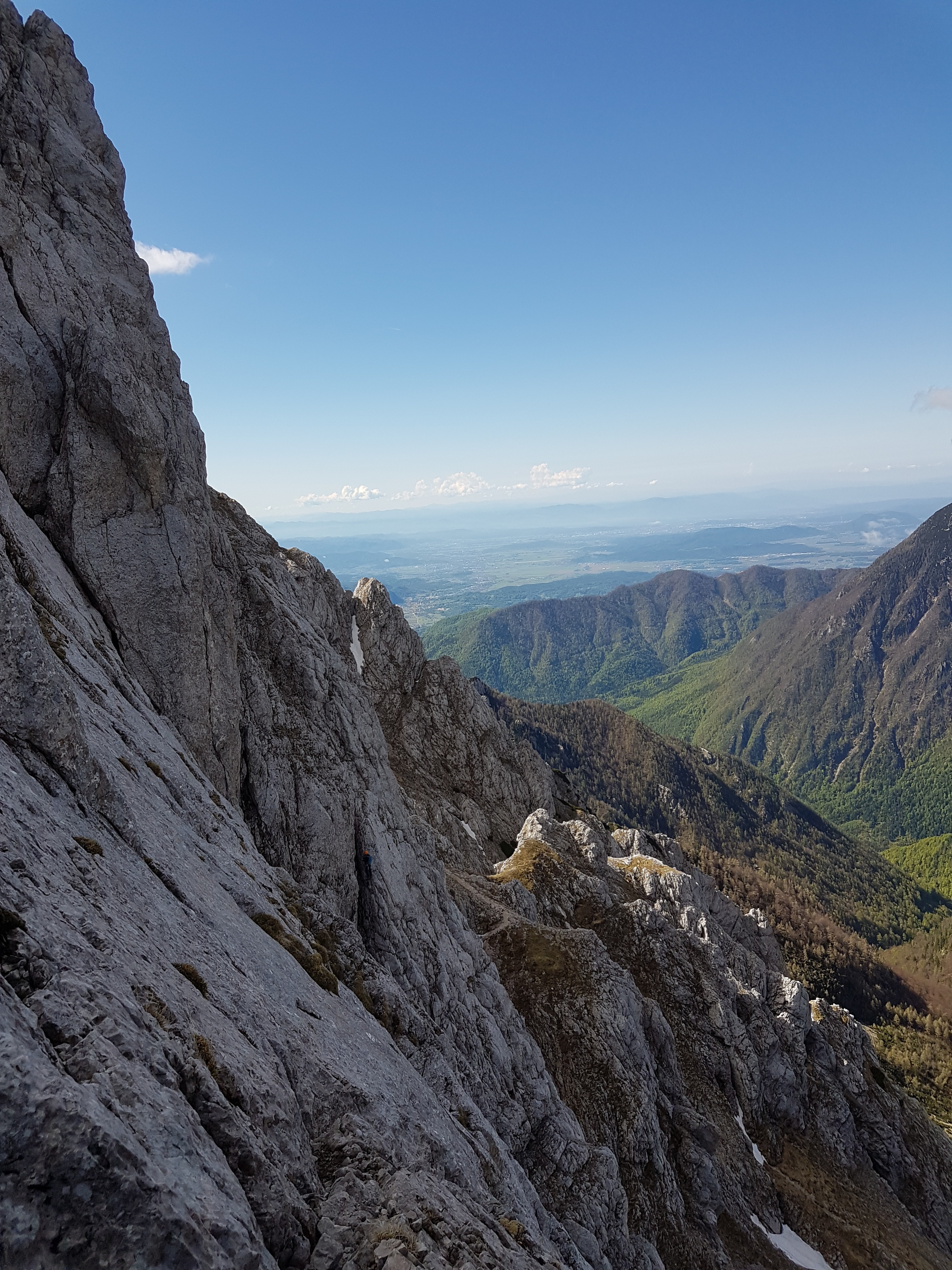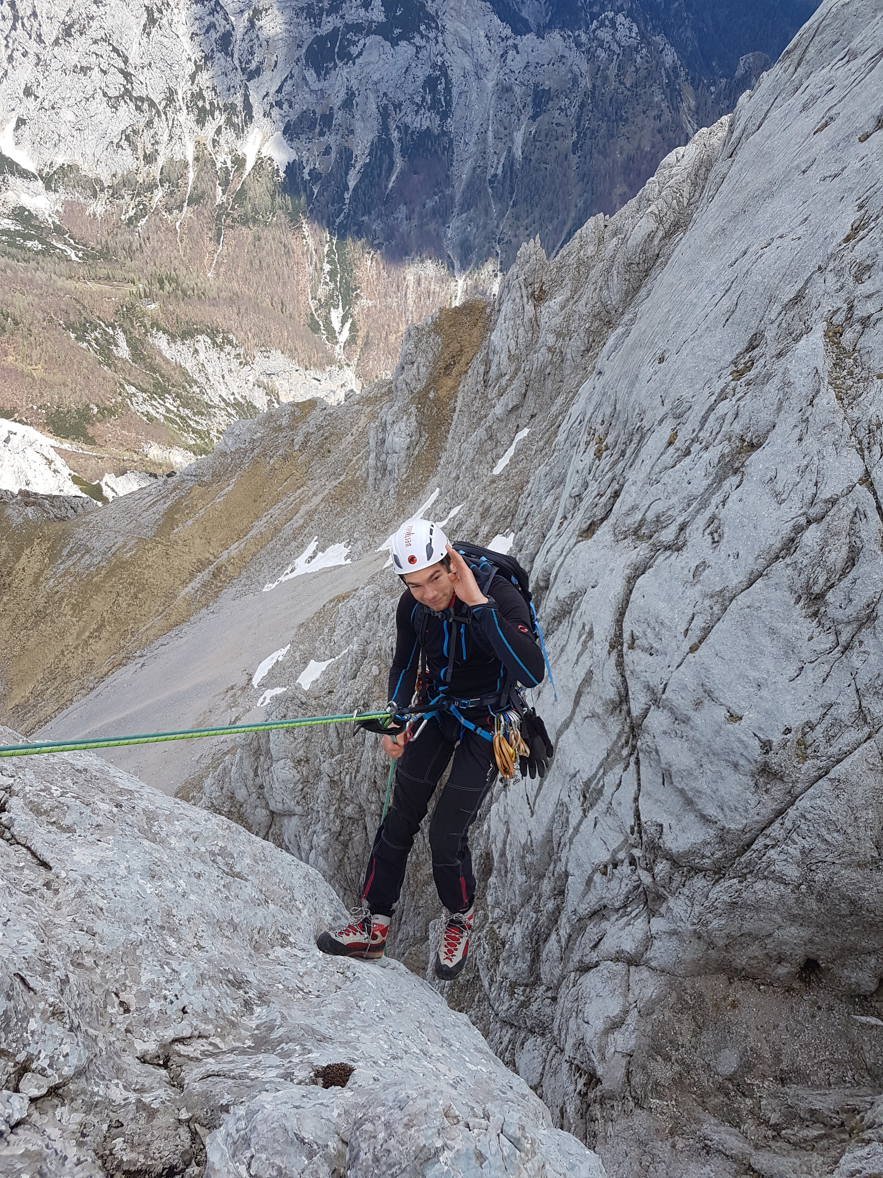 Ni bilo pet minut, ko se pripeljeta še Nejc in Matjaž, ter zategnemo z avti do Jermance. Razdelimo… no… tečajniki poberemo štrike .. in pihnemo proti Kamniškemu sedlu. Vmes Matjaž preverja naše poznavanje ključnih odsekov in točk (V klinu, Pri Pastirjih, … ) ter okoliških vrhov.