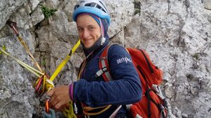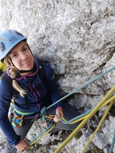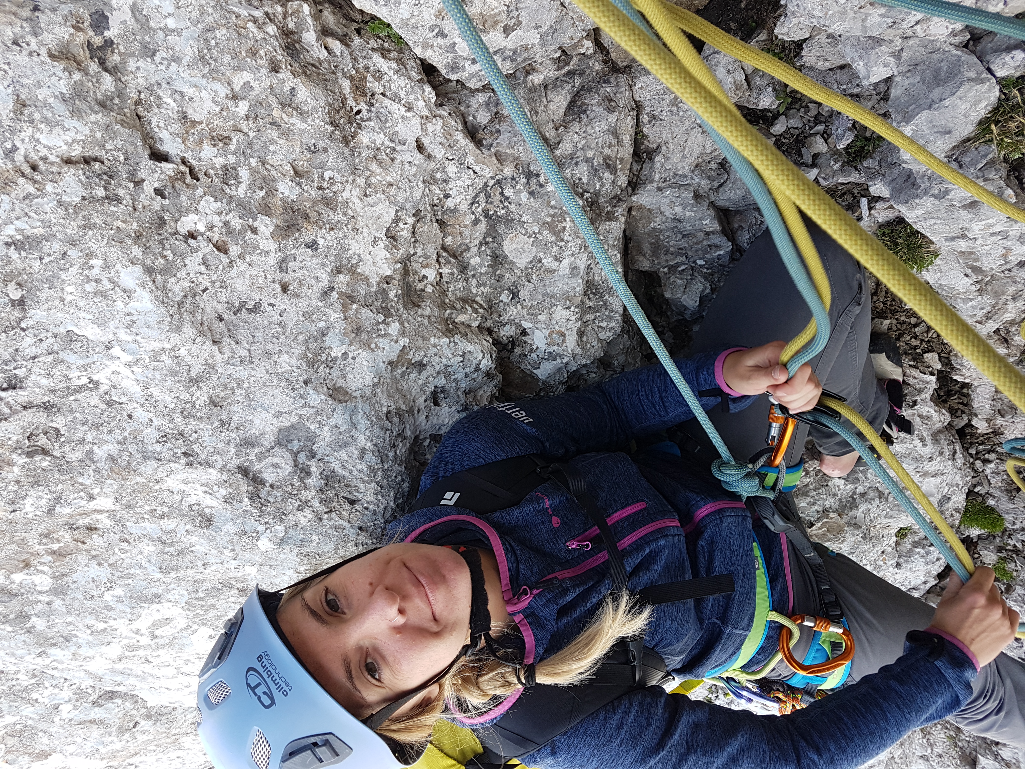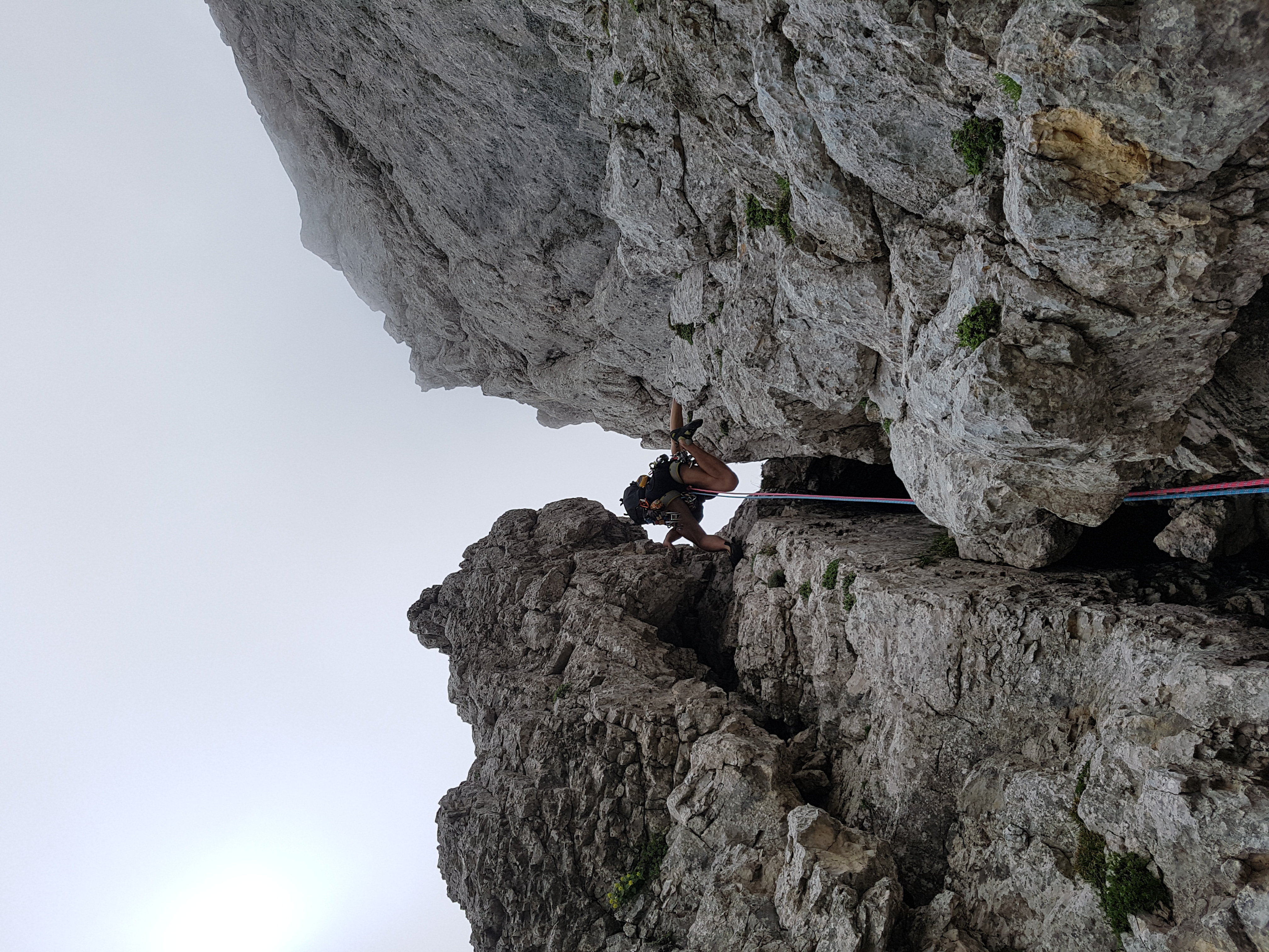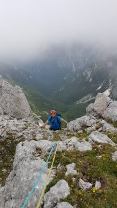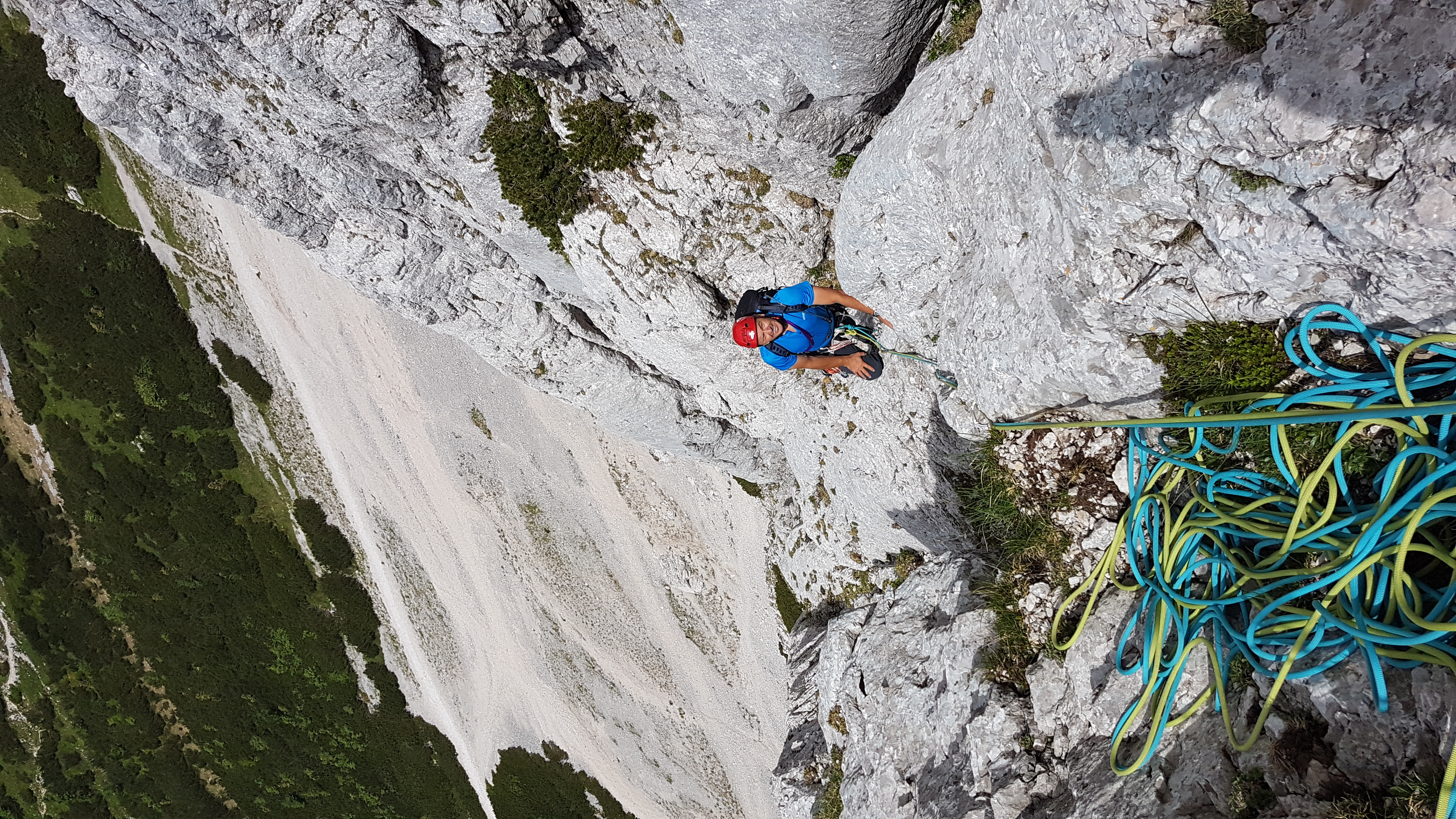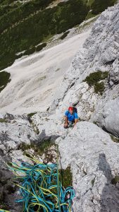 Nadaljevala sva po originalni smeri, kjer je skala dokaj kompaktna in plezanje večinoma zelo prijetno.«