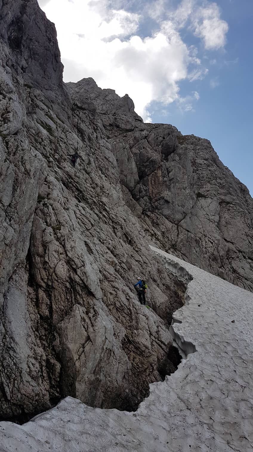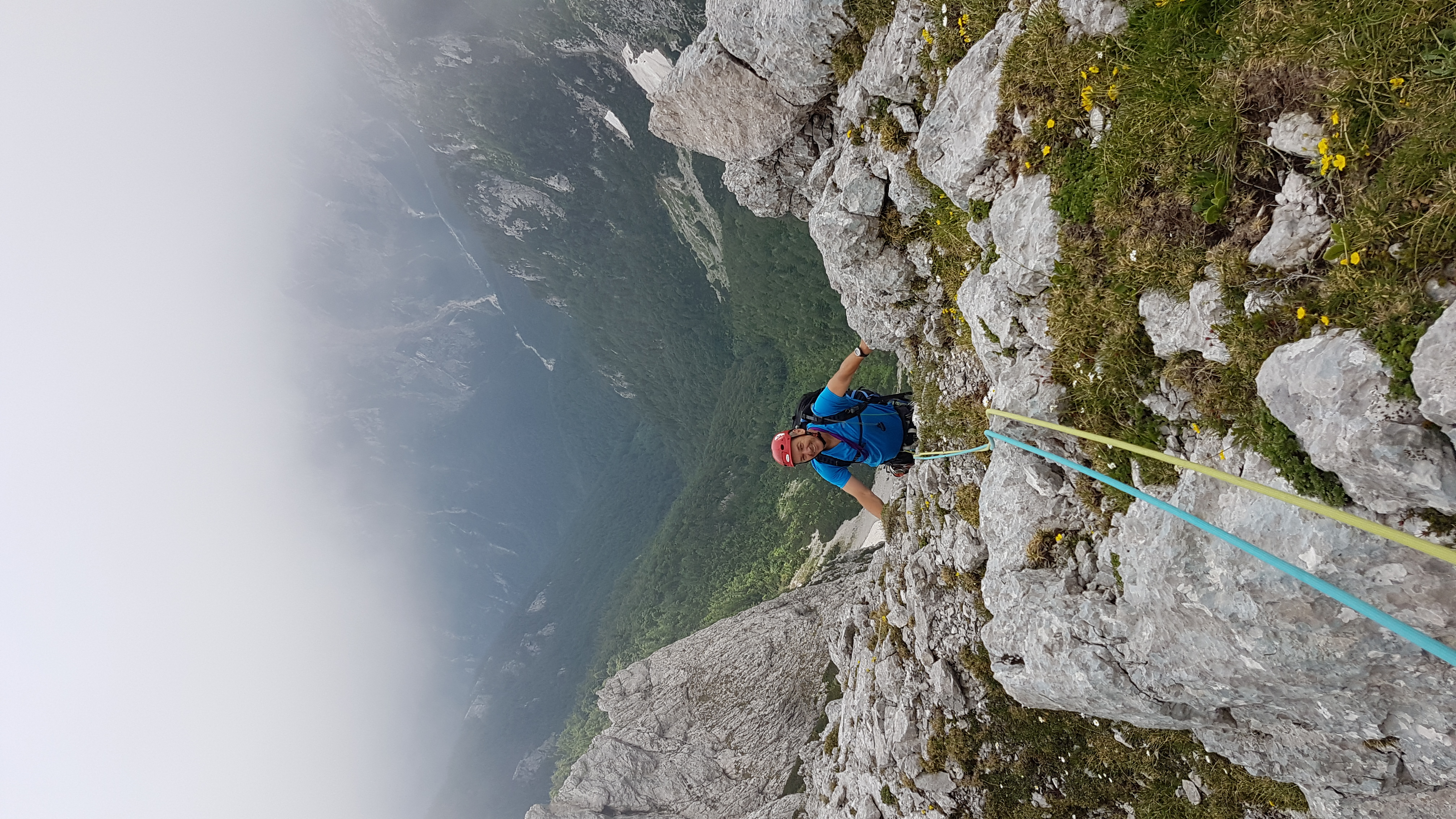 Branka pravi: Smerca je super, večinoma super skala, na nekaterih mestih malo naloženo, vse skupaj pa se izmenjava z odseki ruševja. Včasih imaš občutek, da bi moral obvladati slack line…