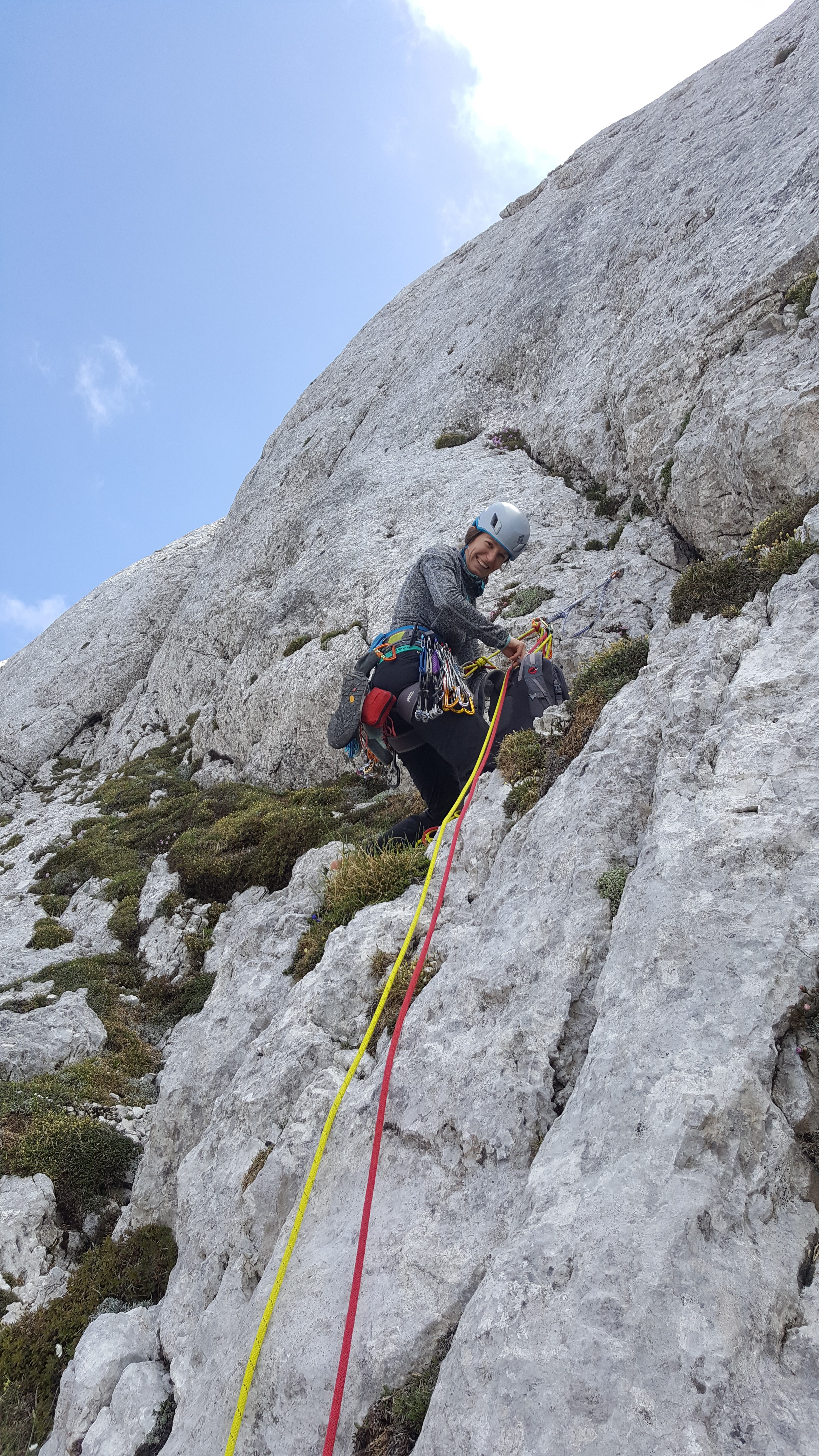 Knjiga Moje gore (Arnejšek M.) je dala navdih, da smo barve letošnje jeseni občudovali z grebenov Široke peči, Rjavine, Rinke, Skute, Kočne, Planjave in Košutnikovega turna. Vmes sem šla na Babji alpinistični tabor (https://www.pzs.si/novice.php?pid=12901). Potem je prišla zima. Po lažjih grapah smo usput osvojili Begunjščico in Prisojnik. Vsi moji plezalni prijatelji si med sabo radi kradejo plezalno robo in vžigalnike! Z Matevžem G. sva januarja delila veselje tudi v slapu Piccolo Nabois. Z njim v srcu sem potem veselje delila s prijatelji: v Rabeljskem, Drugem v Krnici in Luciferju. Ada je v Luciferju dobila vzdevek Divje meso. Preden smo šli v slap si je doma odrezala delček prsta, ko je rezala kruh za sendviče. Ker smo šli po službi sem potem (klasično) zamudila na občni zbor Vertikale. Ko dež poje vse slapove, bo prišla pomlad s skalo. Vrv mora soplezalca vezat predvsem od srca do srca, take vezi so večne! Navezala sem se še s prijatelji: Ado P., Andražem Š., Badžijem Š., Meri J., Menotom S., L. Murnom, Polono B. in Saro J.